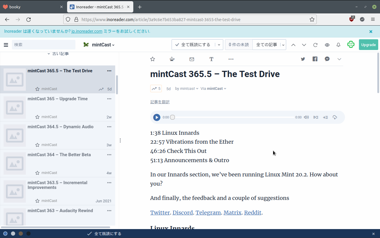 拡張機能もあるが、ブラウザ自体のブックマークで手軽にinoreader に保存するボタンなんかも用意されている。https://www.inoreader.com/apps