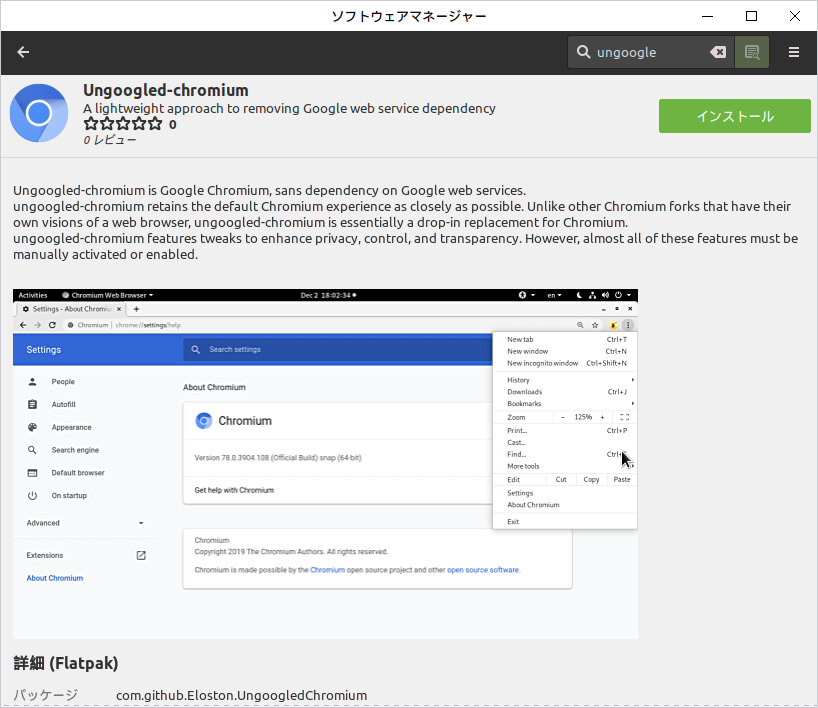 これ、Linux Mint のソフトストアでもFlatpak版が出てくる。常用するには躊躇するが。
