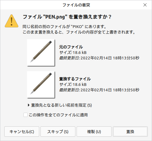 大昔のWindowsは、そんな振る舞いだったような気がする。フォルダー「マージ」ではなく単なるコピー貼り付けだったような。パソコン旧世代人の私はこれをトラウマとして今までファイル消滅を警戒していた。今では心配無用なのね。