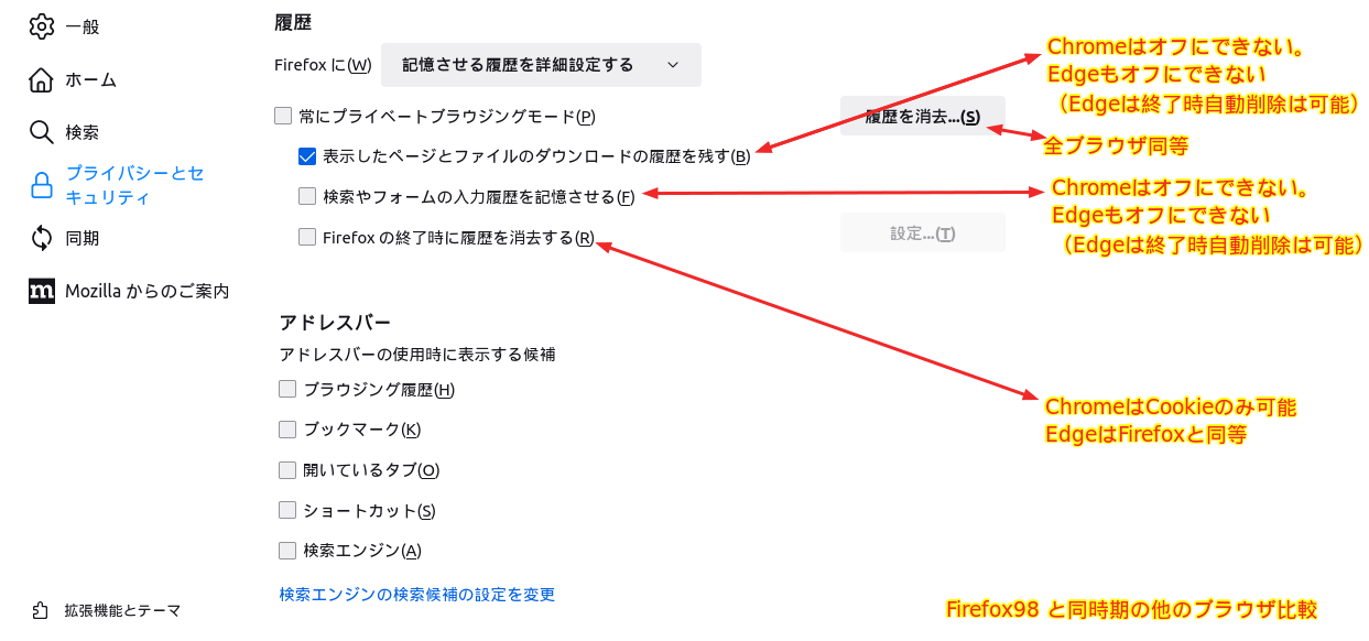 でも、検索履歴や閲覧履歴を保存するか否かの選択肢の有無によって、