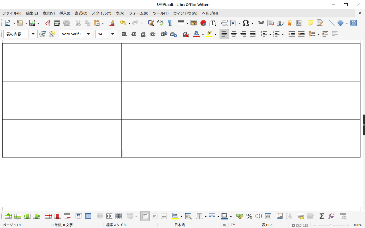 私は、LibreOffice Writer の3×3の単純な表組みをホーム内のテンプレートフォルダに入れてある。