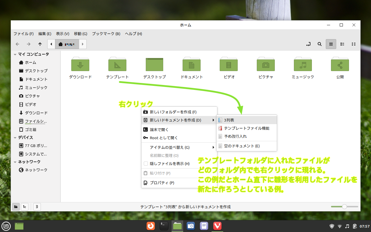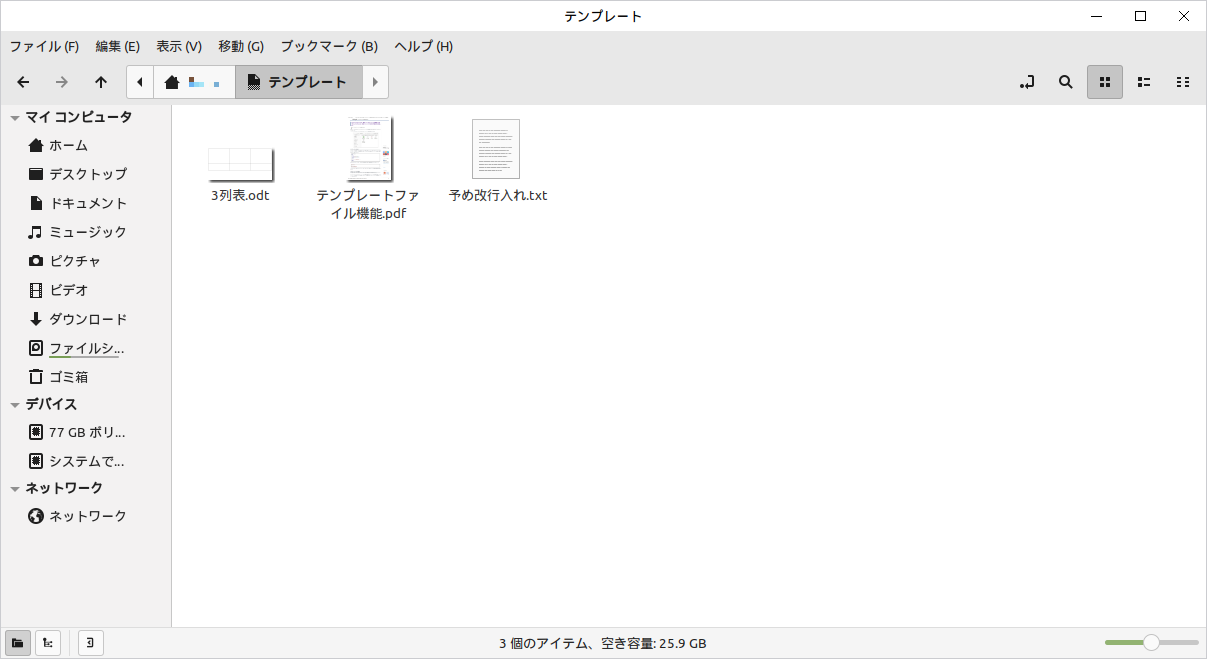 Linux デスクトップではよく目にするテンプレートフォルダ。言わば、雛形の巣。