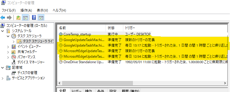 タスクスケジューラはそのままでもいいが、Chrome や新Edge などのChromium系ブラウザを追加すると、タスクが2行ずづ増えてゆく。