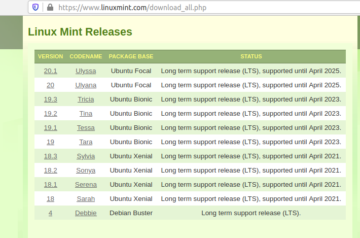 私は、公式ホームページにサポート期間が過去のバージョン分も含めて一覧的に公開しているか否かで、その「やる気」姿勢を察しづける。例えば、Linux Mint の場合、