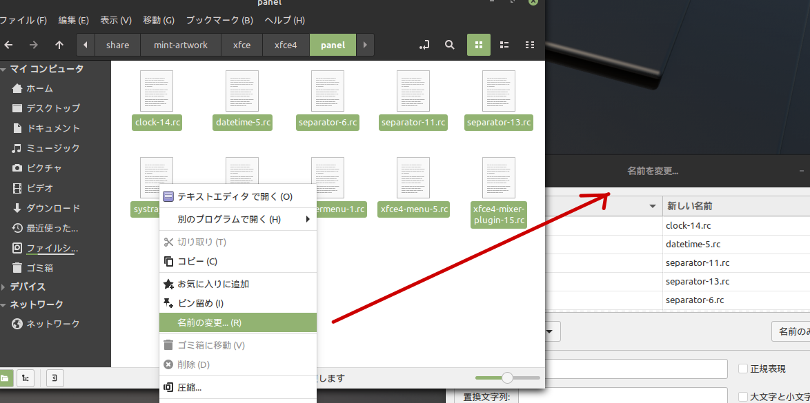 ファイルマネージャーNEMOで複数ファイルを選択後の「名前の変更」でも自動連携される。